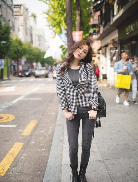 早秋的季节,穿上黑白格子衬衫搭配烟灰色铅笔裤,内搭灰色吊带,整身look非常有层次感,并且很帅气。白天可以把衬衫系在腰上,晚上转凉可以再披上,一天之内就能转换多种风格。在温度像发疯一样上上下下不规律的换季之交,还属衬衫最贴心。
