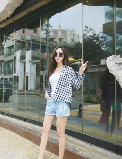 里面搭配t恤也是很时尚个性的打扮哦!你想彰显怎样的风格都能通过配饰表现。运动风就来件稍大件的格子衬衫,里面加白色t恤,搭配浅色牛仔短裤,清爽干净,再加上一双帆布鞋,减龄不止一点点哦。