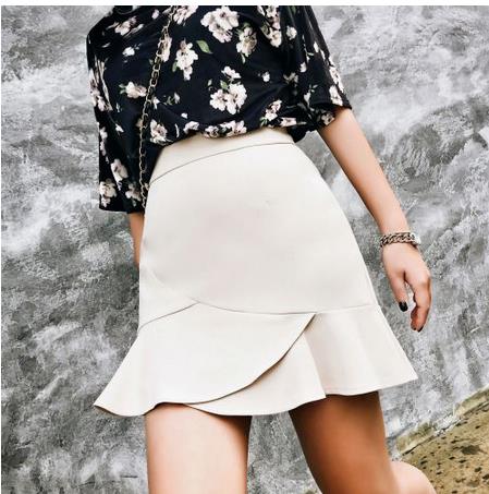 新款韩版荷叶边半身裙高腰不规则a字裙打底裙鱼尾短裙女