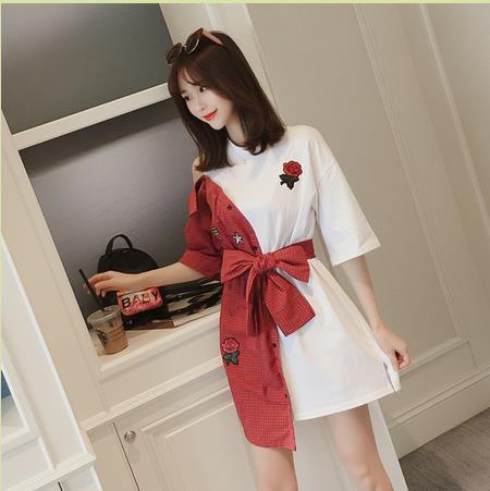 刺绣拼接衬衫连衣裙女春秋2017新款韩版显瘦宽松百搭学生短裙子潮
