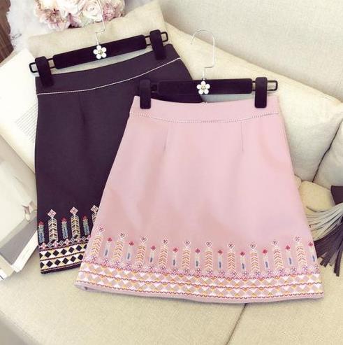 A字裙的挺括版型,很有时尚的味道,拉长腿部线条,精致的刺绣纹理带有浓浓的肌理感,清晰质感,透露出独有的文艺气质,随意穿搭,轻松时尚俏皮。
