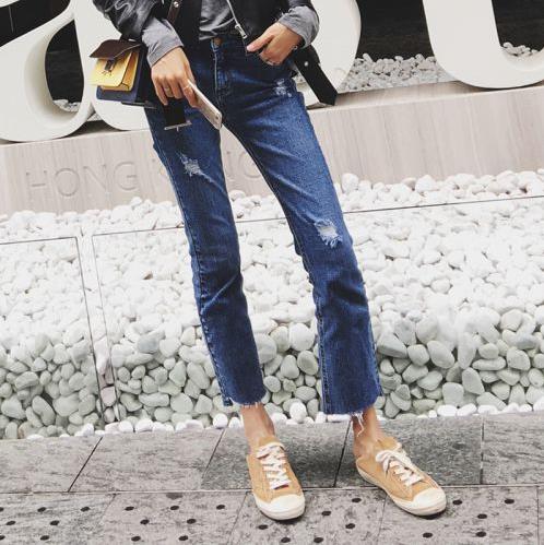 当下fashion的裤型非微喇牛仔裤莫属,穿腻了小脚牛仔裤,不妨尝试下微喇牛仔裤,会给你带来不一样的感觉,柔软舒适弹力牛仔面料,高腰设计不仅有拉长腿部比例的效果 还有提臀显腰细的效果哦,微喇一刀切的毛边裤脚设计更加时尚不做作,露出脚踝较细部位,显瘦!上围裤型还是紧身显瘦型的,保守与潮流结合,穿上TA你就会明白,TA有值得你拥有的理由。