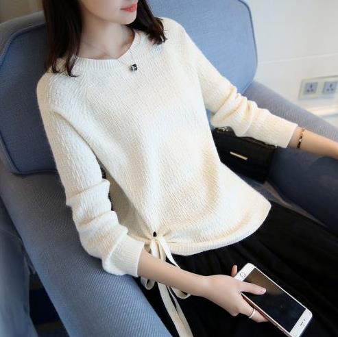 新款纯色套头衫短款女装宽松长袖薄毛衣潮