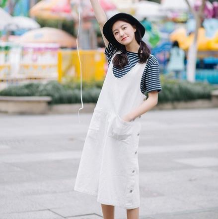 采用了白色的颜色作为连衣裙的颜色,白色会给美少女们带来纯洁,清新,年轻的感觉。使自己变的更加的有少女风范。兜子的设计,让这件裙子变的更加的有档次。