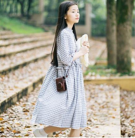 嗨森活文艺绑带袖子格子中裙连衣裙宽松显瘦裙子中袖甜美iFashion设计者在上面设计了更多的小格子,看起来很脱俗,更能凸显出一丝丝的田园风,是很多青春美少女们的必选,袖子上更是用了绑带的设计,让这件裙子变的更有特殊的风格。