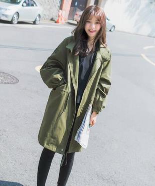 今年军绿色元素流行度可是有增不减,军绿色的风衣更是一直延续到现在,韩版款式,相信很多妹子都会喜欢,宽松的版型很容易穿出韩范,精致的剪裁,很好修饰身材,收腰设计,藏肉显瘦,胖mm最佳的单品。