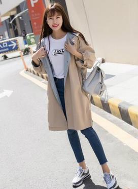这是一款两面穿的风衣,喜欢吗?版型一眼看上去就很宽松休闲,胖mm穿上一秒藏肉!关键那种洒脱感轻易穿出,休闲连帽设计,加上养眼的颜色,最能衬托肌肤了,搭配一条牛仔裤和小白鞋超棒的。