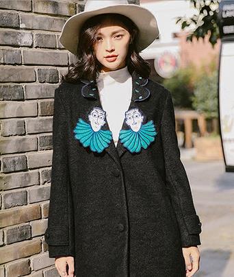 推荐理由:插画师nicon的随笔创作,将玩趣幽默的舞台剧玩偶,与大衣设计完美结合,给你不一样的惊喜感觉!运用精致的贴布刺绣工艺完美诠释,更不是将随笔形象照办的大衣上,而是独具匠心地设计成俏皮十足的衣领哦,相信收到实物的瞬间你会再一次爱上它!