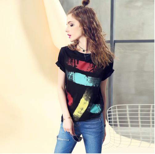 夏季新款白色短袖t恤女 圆领宽松时尚潮流个性黑色体恤