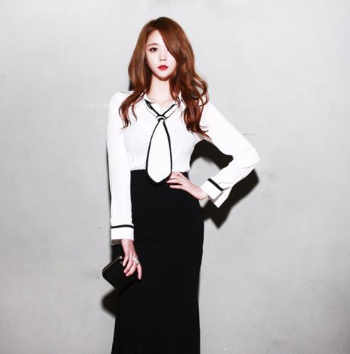 新品OL时尚气质领带黑白拼色打底开衫上衣