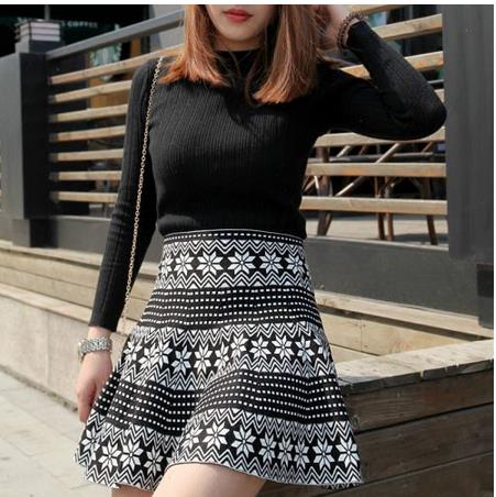 2017新款短裙半身裙高腰松紧a字裙伞裙百褶裙秋冬针织蓬蓬裙子潮