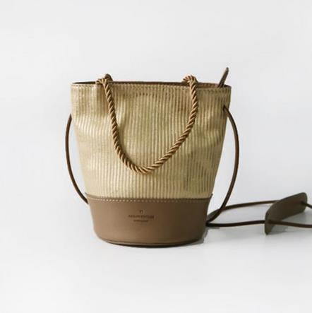 小水桶包一直是春秋两季比较受欢迎的包型,这款是拼接的,上半部分是竖条纹的二层牛皮,下半部分是头层牛皮,手感和质量都很舒服。小小的包包提在手里也很舒服,搭配素雅一点的衣服就很点睛。