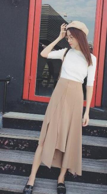 被这款不规则设计的半身裙美到了,即使是腿粗的妹子也能穿出显瘦效果,搭配中袖的白色针织衫特别的气质好看。