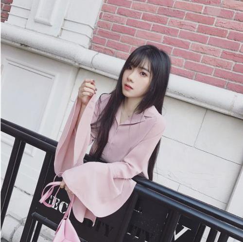 春天衬衫不嫌多,何况是识别度这么高的这件,是下半身的搭配随心所欲的好看,不管是搭配短裙短裤还是牛仔裤都很好看。 想说皮肤白的妹砸们撸粉色吧效果很激赞,这款衬衫的袖子是今年流行的喇叭袖,走路起来都很灵动,喇叭袖口呕处还有纽扣的设计,显瘦有型
