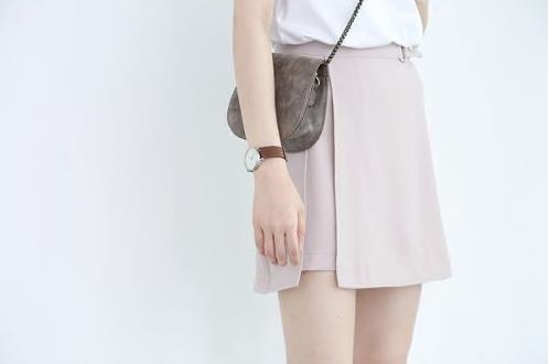 夏天不适合太过深的颜色,会给人沉闷透不过气的感觉,所以这条杏色的小短裙很适合夏天哦~不规则的剪裁设计感十足,简约没有多余装饰的款式很百搭很清新,搭配一件花色衬衫就很美好。
