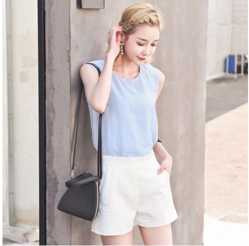 雪纺背心高腰阔腿短裤两件套女夏装时尚套装韩版潮2017新款