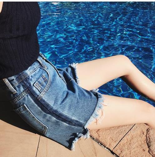 新款夏季短裤韩版宽松高腰学生须边牛仔短裤修身显瘦热裤女