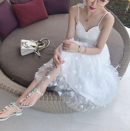 夏款白裙子仙气小礼服修身吊带雪纺连衣长裙