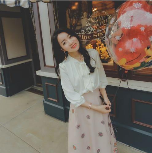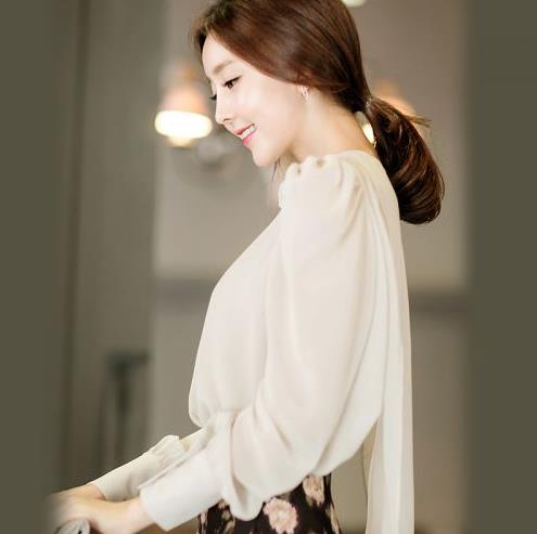 女士宽松飘带气质衬衣 2017春装长袖雪纺衬衫