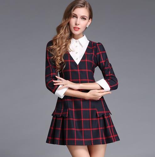 学院风偏爱格子,而格子却乐于活跃在任何一种风格里。红与黑的碰撞稍显稳重,假两件设计的重要意义是凸显了V领的存在感,短裙的俏皮比起长裙才更加富有吸引力,这样的裙可以帮你跨越学院风的桎梏。