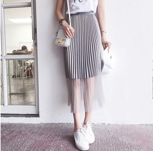 没有人会比我更爱半身裙了。也没有比半身裙更加适合夏天的了。这是能满足环肥燕瘦的百搭之选,这也是这一期爱惨了的款式。充满未来感的金属灰,面料质感有光泽,经过压褶处理后,层叠的光影效果非常丰富。纱网拼接减轻了金属灰面料的厚重感,增加了透气性,有种上下轻薄对比的冲击感。百搭又神奇的半身裙能不爱吗?