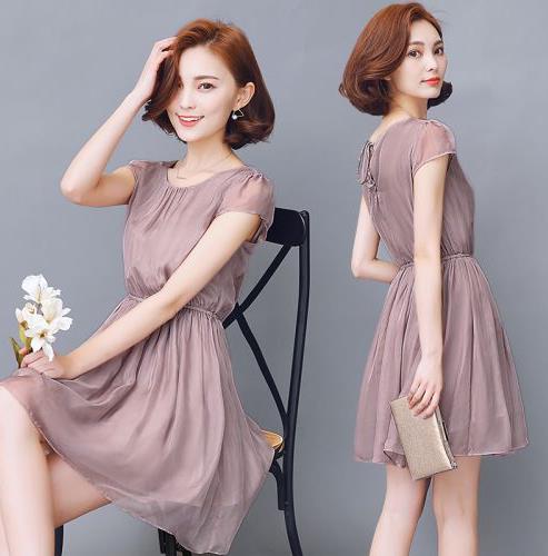 真丝连衣裙女夏2017修身显瘦100%桑蚕丝中长款A字裙
