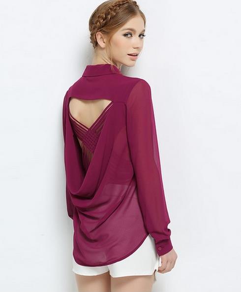 所谓俏打底能让打底不那么随便,精致一点应该是每一个女人的生活要求。酒红色可以低调也可以独特,衬肤色就显得高雅,后背的镂空是长袖衬衫最为别致的地方,能不能显现出来值得考虑。