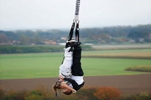 比利时夫妻桑德拉和杰恩在婚庆公司制作的150英尺高的特殊平台上举行了结婚仪式。这对夫妻在音乐声中观看夫妻交换誓言,然后就在平台边缘进行了双重蹦极运动。