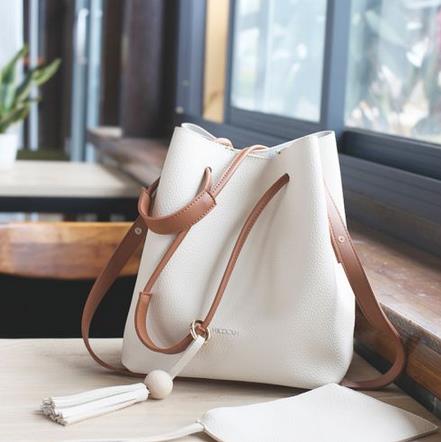 新款女包斜挎包木珠流苏抽带水桶包子母包手提女大包