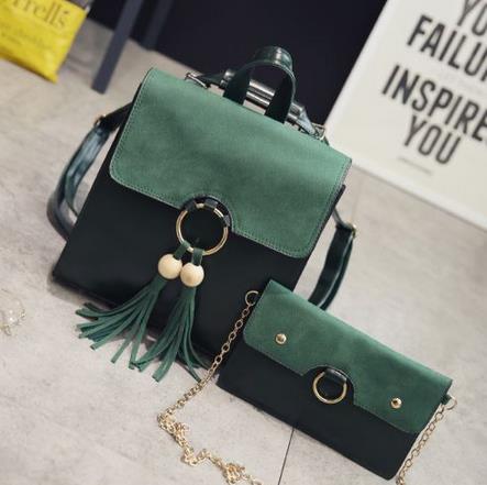 2017新款韩版潮磨砂流苏pu两用背包子母包休闲学院风书包