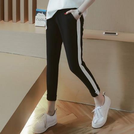 韩版撞色白条纹松紧腰显瘦运动休闲裤