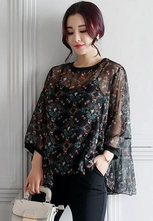 02 微透视的印花雪纺很轻佻?在色彩和印花上整体显得庄重之外,薄透的设计反而会在视觉上平衡色彩的压抑。选择浅色的烟管裤或者西装裤,就能去通勤。
