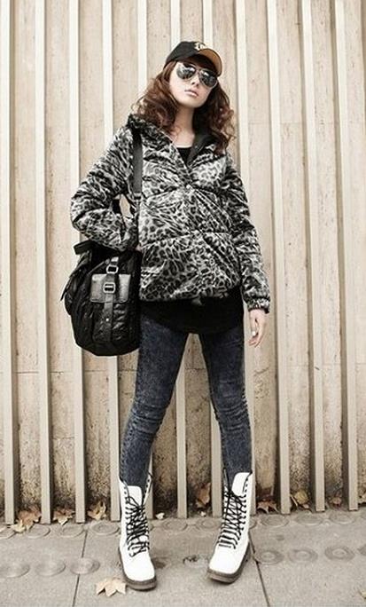看起来就很温暖的双层夹棉外套,是近来强烈的降温天所必需的款式哦,深灰色的豹纹感觉非常特别,运动风的连帽外套搭配帅气的型女look非常亮眼!